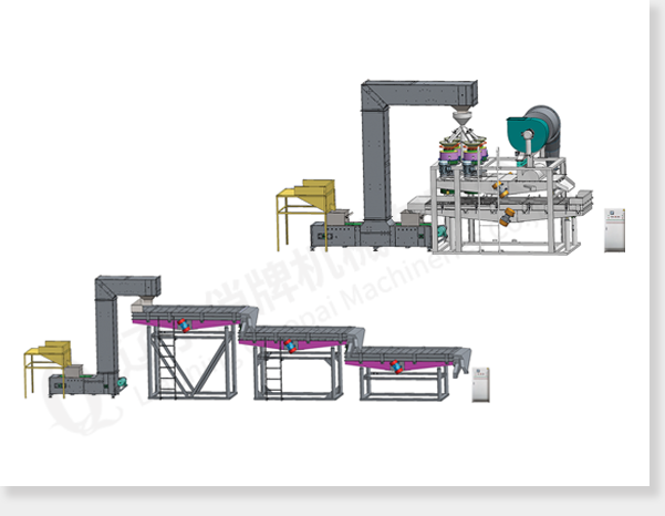 分級單元:上料斗,提升機(jī)和分級篩(數(shù)量取決于原料情況)。